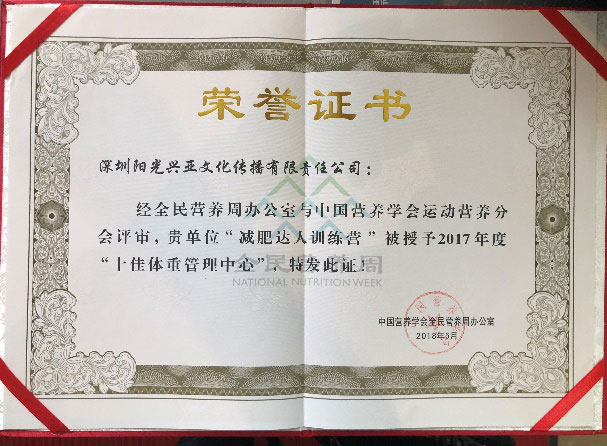 由中國營養(yǎng)學會主辦的2018全民營養(yǎng)周學術研討會暨頒獎典禮在人民日報社舉辦,《中國肥胖預防與控制藍皮書》正式發(fā)布,中國營養(yǎng)學會發(fā)布首屆全國“十佳體重管理中心”名單,減肥達人減肥訓練營(減肥夏令營)被評為全國“十佳體重管理中心”。