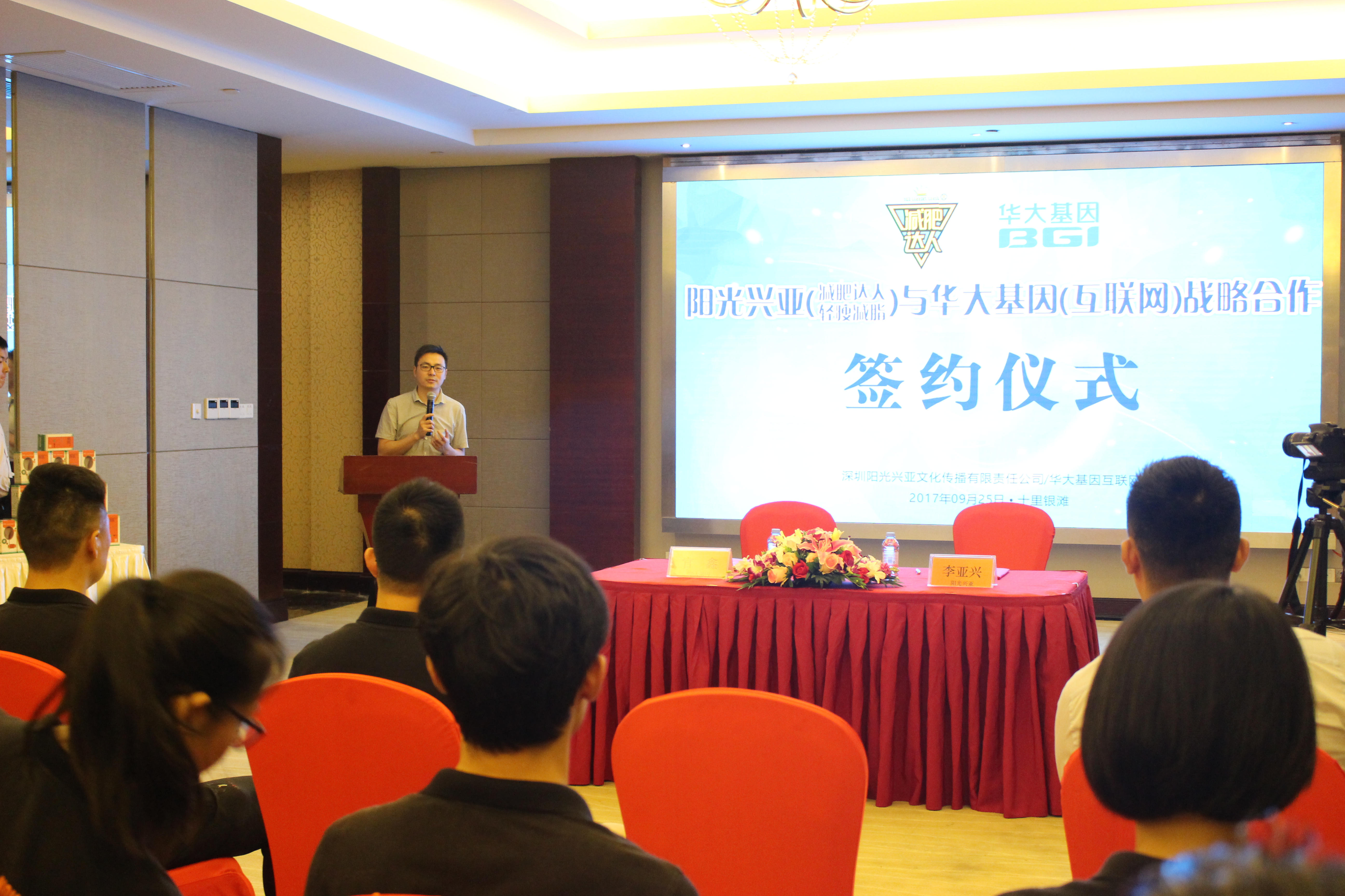9月25日,深圳陽光興亞文化傳播有限責(zé)任公司(以下簡稱陽光興亞)與華大基因互聯(lián)網(wǎng)(以下簡稱華大互聯(lián)網(wǎng))戰(zhàn)略合作簽約儀式在減肥達人十里銀灘營地舉行,陽光興亞與華大互聯(lián)網(wǎng)達成建立長期戰(zhàn)略合作伙伴關(guān)系的共識。陽光興亞總經(jīng)理李亞興先生,副總經(jīng)理陳華毅先生,輕瘦項目經(jīng)理朱程秀女士,華大互聯(lián)網(wǎng)副總經(jīng)理官鑫先生、電商運營經(jīng)理黃玲女士等雙方領(lǐng)導(dǎo)出席了簽約儀式