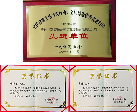 陽光興亞榮獲中國保健協(xié)會先進(jìn)單位和先進(jìn)個人